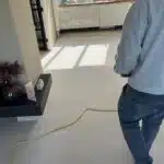 Voordat de PVC visgraat vloer kon worden gelegd, moest de bestaande ondervloer eerst worden geschuurd.